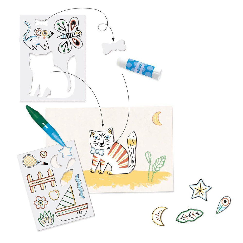 Créer avec 80 formes - Coloriage & Collage avec animaux et décors - Coffret loisir créatif enfant 3 à 6 ans